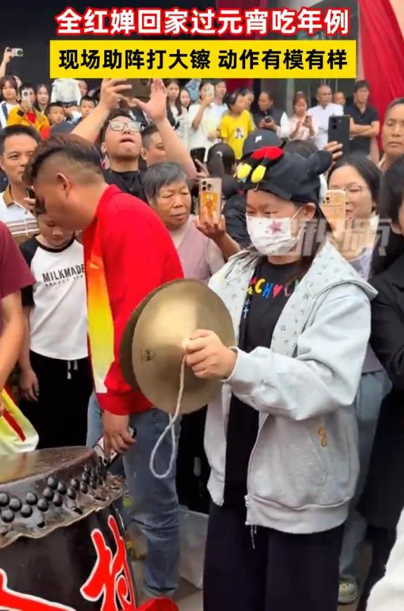 视频中,全红婵身着休闲装,双手持握一对传统大镲,随着节奏奋力敲击,动作流畅毫不怯场。她神情专注投入,与周围村民互动自然,瞬间点燃了庆典的喜庆气氛。网友惊叹其“有模有样”,更感慨“无论站得多高,根始终在故乡”。事实上,这已是全红婵今年春节返乡的又一温情片段,自大年初一回到湛江后,她贴春联、陪伴奶奶、前往外婆家聚餐,行程充满了与家人团聚的烟火气。
