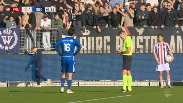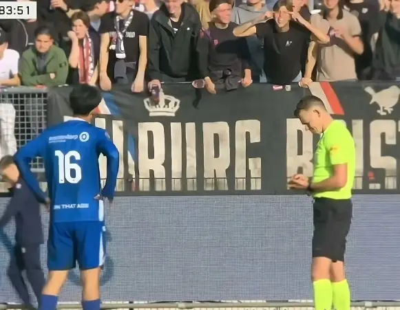 在荷乙第30轮邓伯什客场对阵威廉二世的比赛中,第84分钟,王博豪因防守抱怨被主裁判出示黄牌。这本是足球比赛中再寻常不过的判罚,然而,看台上一名球迷却做出了令人发指的举动——鼓掌嘲讽、狂竖中指,还做出极具种族歧视色彩的“拉眼角”手势。王博豪无奈叉腰,那一刻,他的愤怒与无助,穿透屏幕,刺痛了无数国人的心。